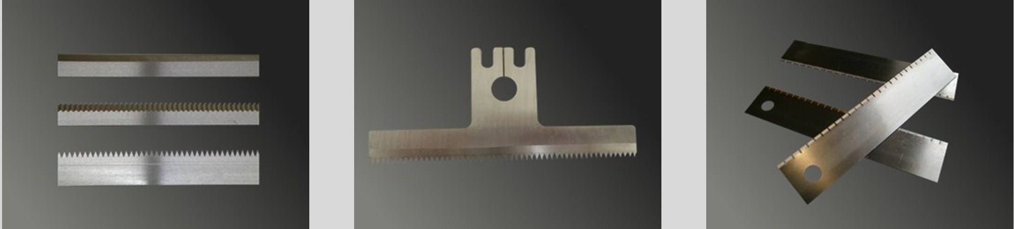 SHARP MACHINERY manufactures serrated knives for form fill and seal packaging equipments. Customzid shape and sizes are available.